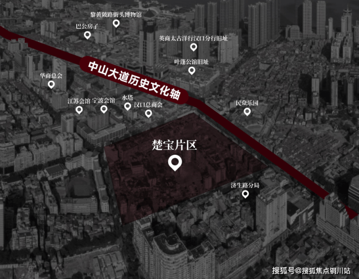 项目所在区域是著名的汉口历史文化街区,这里位于历史文化轴线中山大道沿线,同时又毗邻江汉路商圈,因此,楚宝里天然具备集文、商、旅、居四位一体的禀赋。