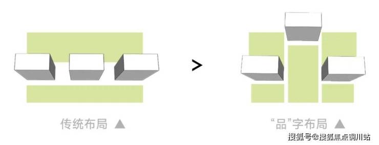 树状自然生长的楼宇,意味着更加独立的空间需求。因此,总图的布局会要求建筑各个方向上的景观空间的均好性。设计采用错位的点状布置,平权了外部的景观空间,也形成了姚江润园独特的总图布局。