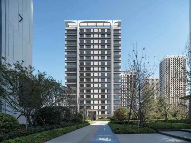 考虑到项目楼栋角度为南偏西37-39°,西晒及海面反射强烈,在立面设计之初就考虑了外遮阳系统,且遮阳系统的设计与立面元素做了巧妙融合,有效起到遮阳抗风、隔音隔热不隔景的作用,立面造型统一而不违和。