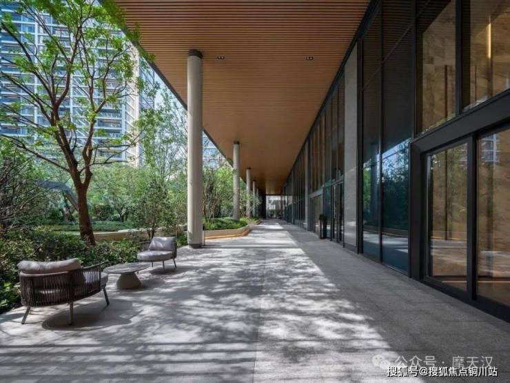 小区内9米高的风雨连廊通道,不论什么天气情况,业主在小区内都有一条安心的归家之路。