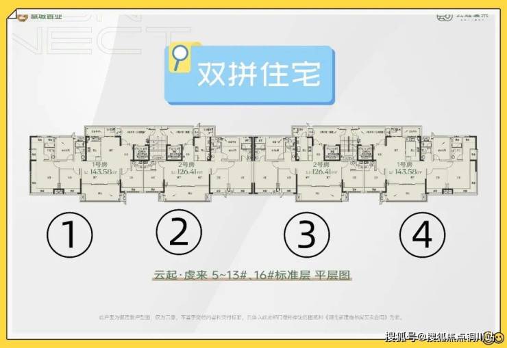 有专家就会问,2.0容积率只做了18层,还留出这么大的中心园林,超高得房率是怎么摆得下的,这就是规划设计的“神来之笔”了,博主凭借多年的地产设计经验拆解总图,奥秘在于楼栋单元双拼,每栋建筑一层有四户住宅,两梯两户纯板楼双拼完全可以接受,当下长沙观沙岭,省府热门板块大量高端改善项目也有大量双拼住宅。