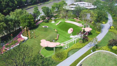 作为稀缺的滨水TOD,光合上城依托自然水系,打造了约20万方的滨水双公园!不同于常规“横向生长”的园林,保利创新性地将公园纵向延伸。打造了0m上的滨水公园,10m上的体育公园,17m上的社区园林三大主题空间。