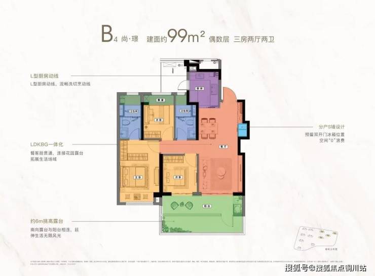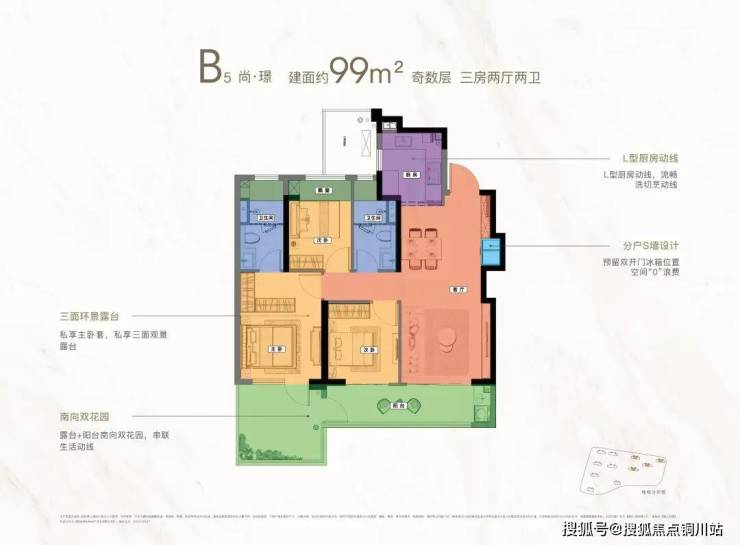 厨房优化,建面约99和115㎡户型将冰箱移至餐厅S墙,进一步释放厨房空间;