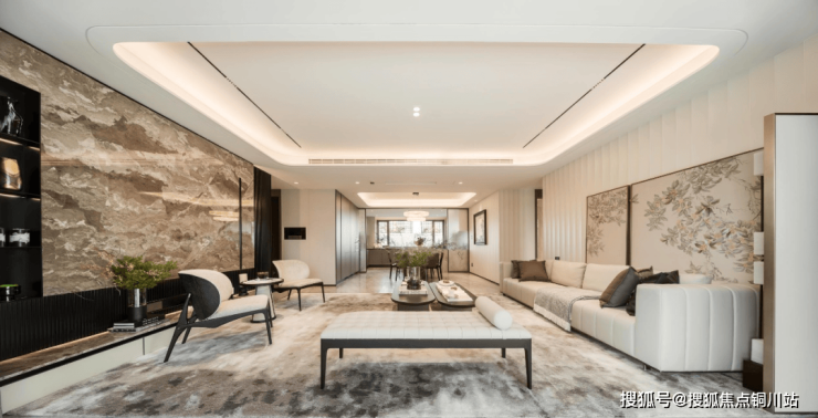 No.3 国际大师执笔的精装体系。九庐采用奢石铺就艺术生活场域。180㎡户型的室内设计由香港郑中(CCD)设计师团队操刀,以国际顶级酒店的标准打造现代东方风格。