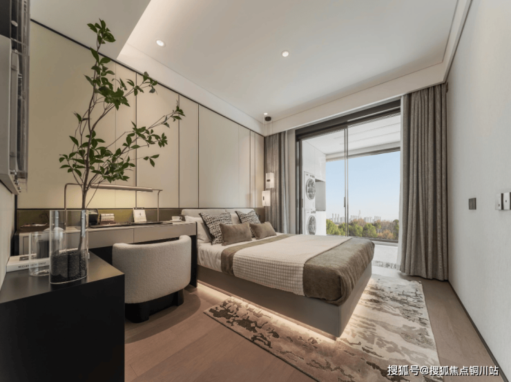 基座部分采用天然奢石,塔冠以暖色全金属铝板打造,在低密布局下更显精致挺拔。约0.44-0.5的南向窗墙比,搭配板块内唯一的落地平推窗,最大化引景入室,重塑城市天际美学。