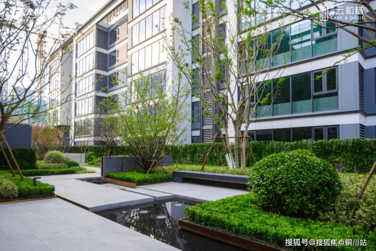 项目整体采用围合式规划布局,全人车分流,不仅使得楼栋之间的楼间距更为宽阔,更提高了每栋楼的采光时长和通风效果。同时形成超7200m²中心园林景观,不仅增加绿化和公共活动空间,提升居住环境质量,还增强了业主的私密性。