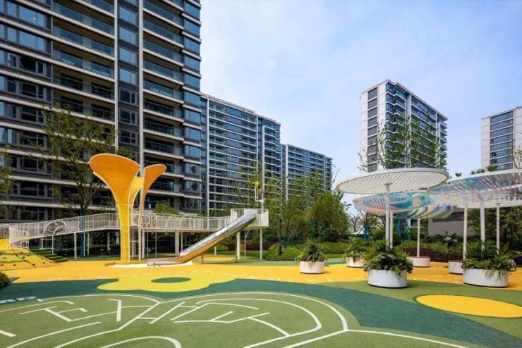 「四园」健身乐园、亲子乐园、社交花园、宅间花园,将多功能场景融入丰盈风景中,营造艺术感与度假感交融的水岸生活。