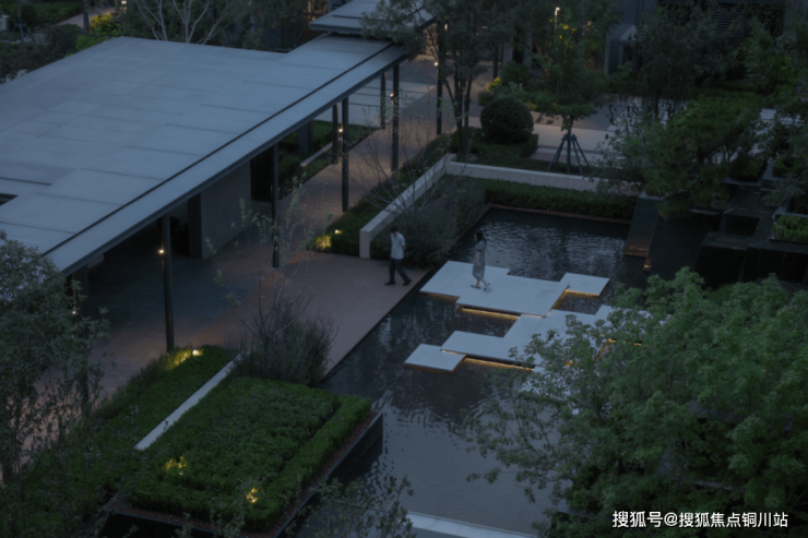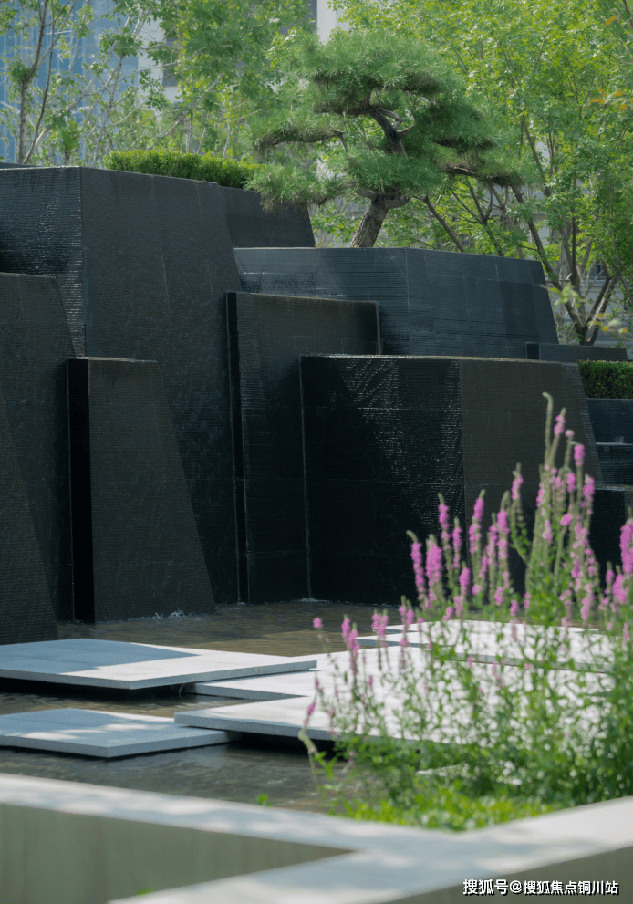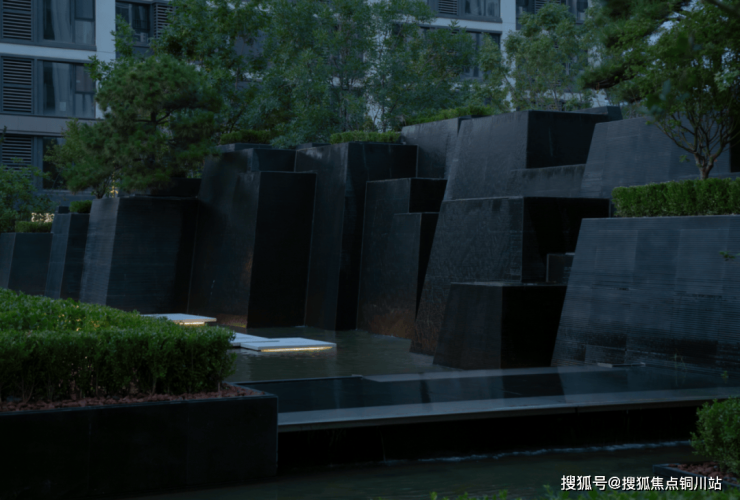 宁静温馨的氛围渗透至每一寸空间,水景之下,深色天然石材与黑金色调作为核心元素铺陈开来。