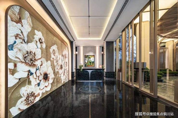 约350㎡酒店式大堂,典雅设计对标奢宅标准。入口高定海棠花符号影壁墙,由珐琅彩与贝母片拼接而成,定格鲜花之姿、呼应自然之韵,海棠初心恒久不变。24小时礼宾静候,归家之旅心境宁和。