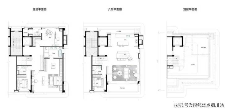项目叠拼235-286㎡面积段户型,上中下叠均独立入户,全套房设计。设计亮点:宅前个性展示区、归家仪式型门头、6.2米超宽起居厅、中叠增设露台形成室内外联动的社交空间。