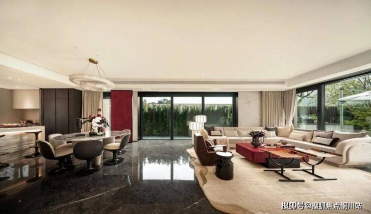 户型②下叠240 m²精装修风格为贵族东方风格,由近境制作团队设计,一层公区客餐厨一体化开放空间,客餐厅 270°大面的落地开窗,内外对景,取自然为景