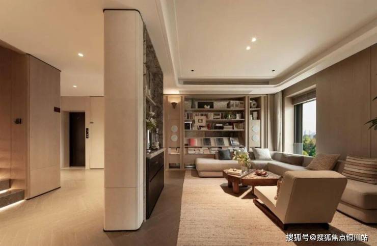二者通过香槟色金属,浅灰色石材、通透玻璃与东方意象的现代表达实现风格统一,构建高端居住氛围。