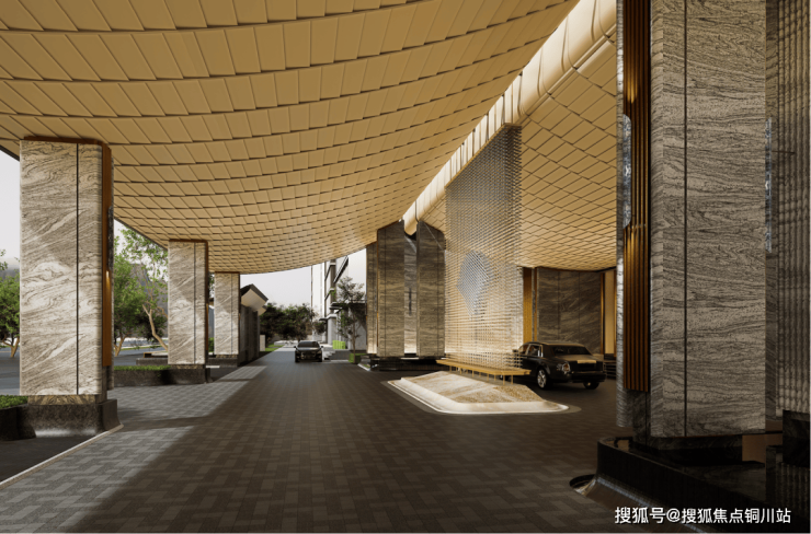 凤起潮鸣的门庭主入口堪称震撼的艺术品——“凤起冕旒”,极具张力的奢华之美。