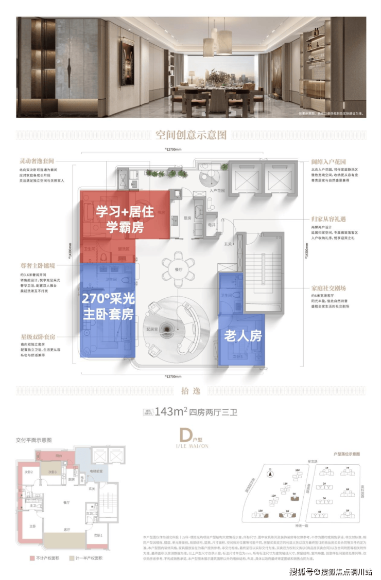 加上三间独立套房的强操作性,建面约143㎡更适合大龄孩子的二胎家庭和三代同堂居住,尊重彼此私人空间,生活作息互不打扰。
