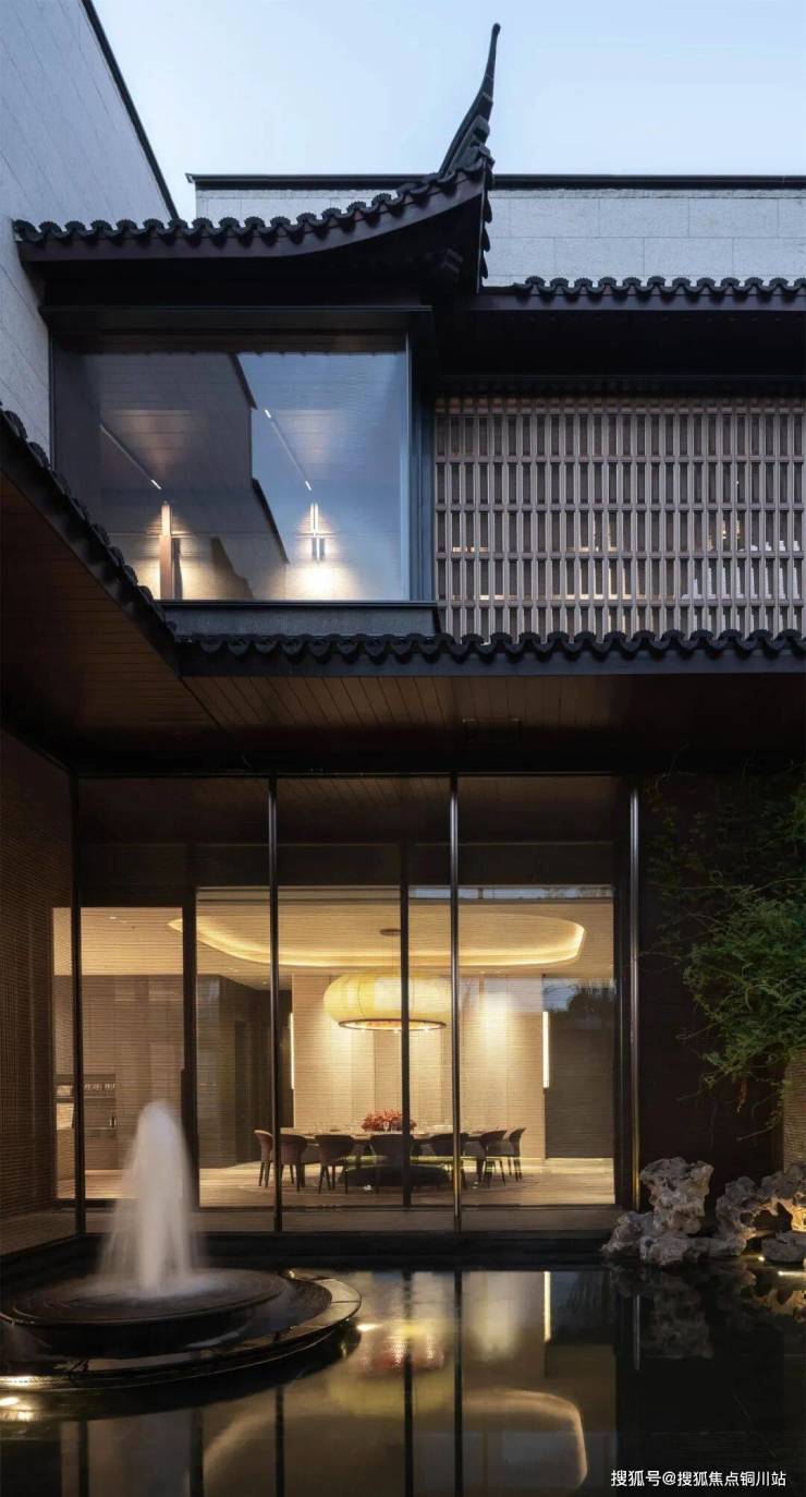 知鱼槛:西侧中段借鉴寄畅园“知鱼槛”形制,以现代语言重构庄子“鱼乐之辩”的哲学意境。流动的水景与对岸“清蘌”游廊形成对景,廊墙开凿圆形墙洞,水底以宋代米芾《研山铭》为蓝本,采用白玉嵌金工艺铺就,赋予水景金石韵味。