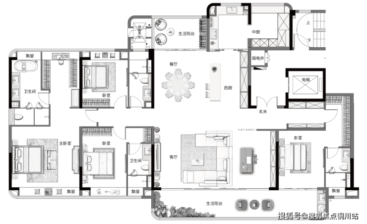 建面约300㎡的4房3厅4卫户型拥有“IMAX”巨幕视野,约24.5m南向面宽,约9m宽的横厅连接约12.4m宽景观阳台。南向三套房设计,均配备独立卫浴、步入式衣帽间、观景飘窗等。建面约8㎡的北侧生活阳台,业主可以根据自身需要随心设计成多功能空间。