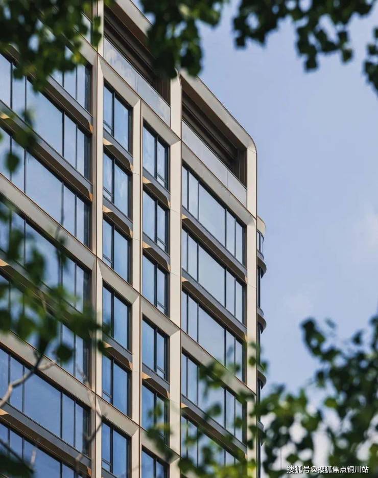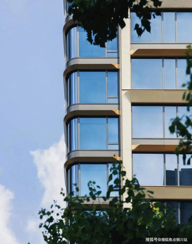 在立面细节中,米白色仿石铝板如玉石般温润,局部镶嵌1㎜精致的金属型材,勾边镶金,深化结合幕墙、灯光、型材包边,遮蔽胶缝等多维因素设计构造关系。门窗四边均采用10㎜*20㎜精致型材作为窗套“画眉”,减少可触面出现铝板折边,精工细作程度令人叹服,重新定义高端窗框标准。