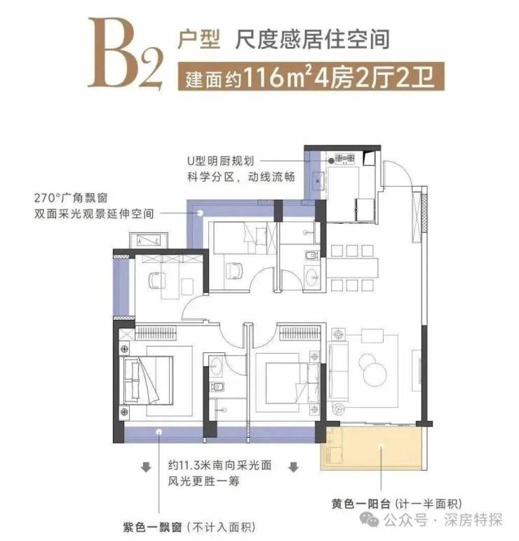 【产品面积段】116-117m'四房,155m'五房梯户比】西区2梯4户、3梯6户 东区35户
