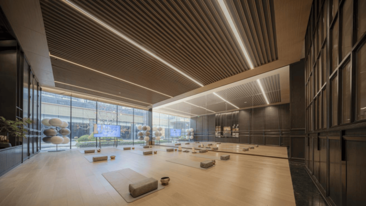 ①在生活营造层面,越秀·天悦江湾展现出越秀地产第一梯队的追求。约2600㎡酒店级会所与约1200㎡下沉庭院构成双核配套体系。前者通过健身房、双私宴厅、业主餐厅等定制化服务,重构社区社交场景;后者以“水晶流瀑+镜面水境”的立体景观,搭配从江苏全冠移植而来的精品丛生乌桕,打造出郑州罕见的沉浸式自然剧场。这种将公共空间转化为“生活发生器”的思维,正是营造美好社区生活的具象化表达。