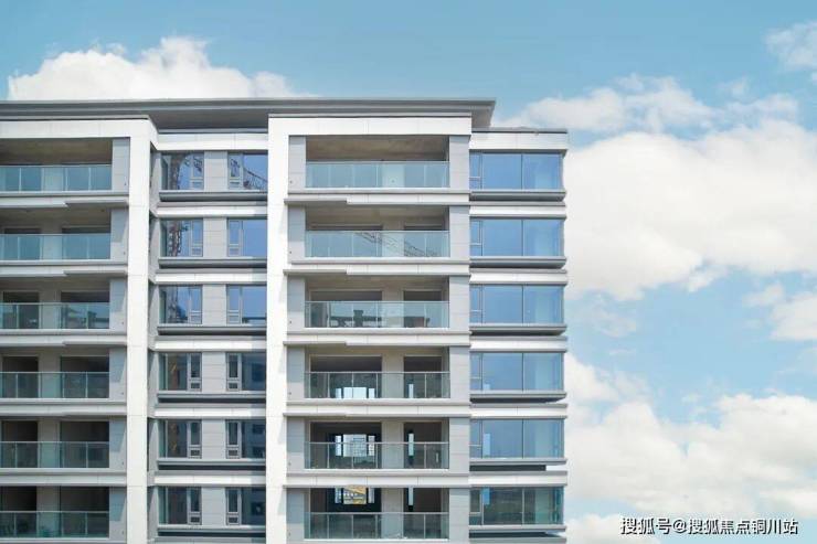 沿着景观小径往里走便来到了洋房区域,光是外立面就很讲究,以高级灰为主色调,采用时下流行的大面积玻璃窗+阳台的构架,和精细化的细节处理,筑出了极具艺术感和轻盈感的立面效果,呈现跟周边建筑和而不同的气质。