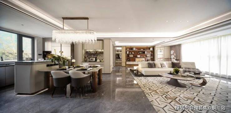 近40个方的LDKG一体大空间,将客厅、餐厅、厨房、阳台功能空间融为一体,7.6米超大全景阳台,闯入视线的都是如诗如画般的画框意境。