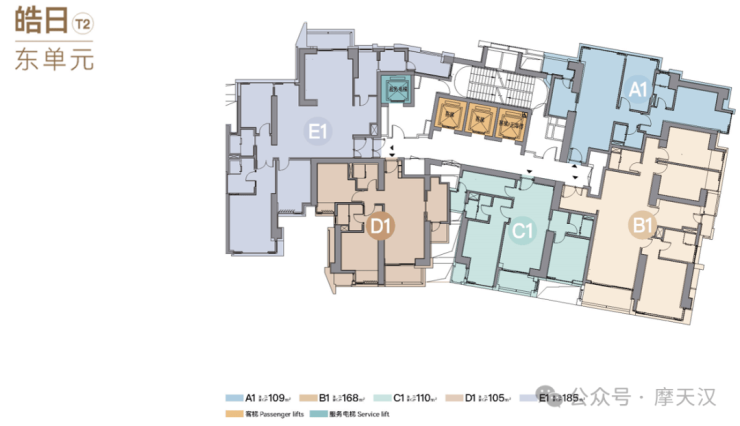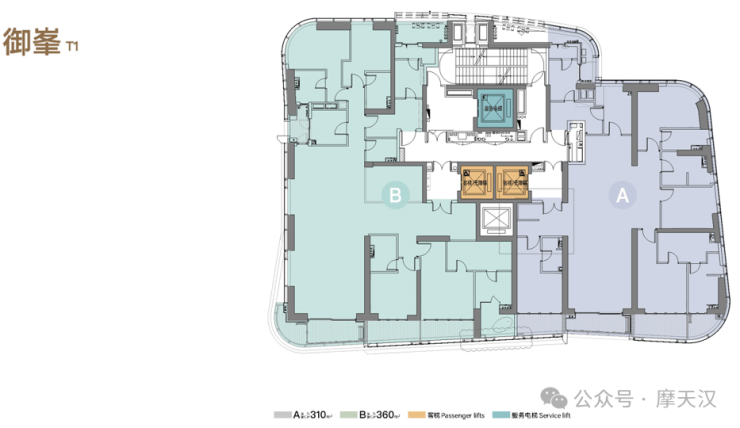 本次公开销售的房源位于项目T1座,主力产品为建筑面积约310及370㎡的四房户型。