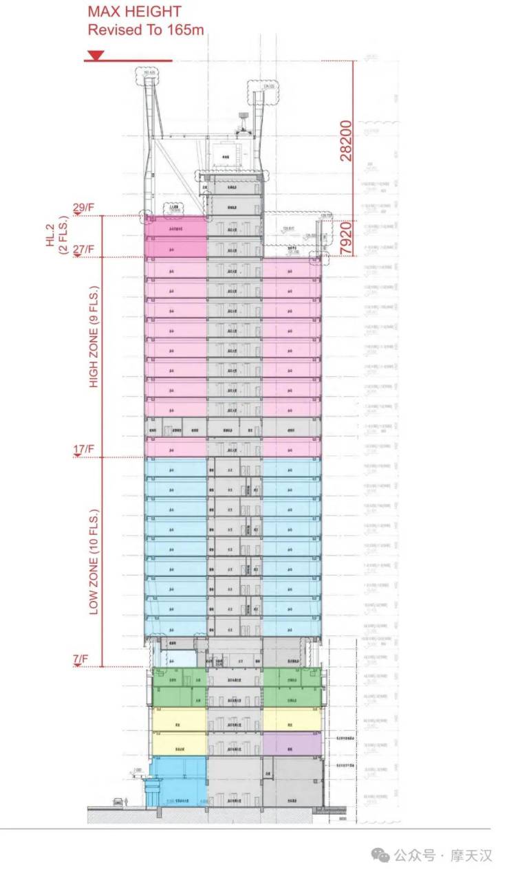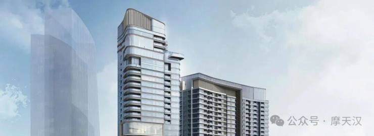 设计有2套建面约600+㎡的复式和1套建面约2000㎡的顶复,顶层阁楼还有一个悬挑泳池。