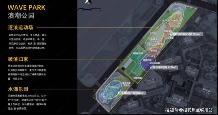 公园三大组团为浪潮公园、活力运动公园、城市社交公园。