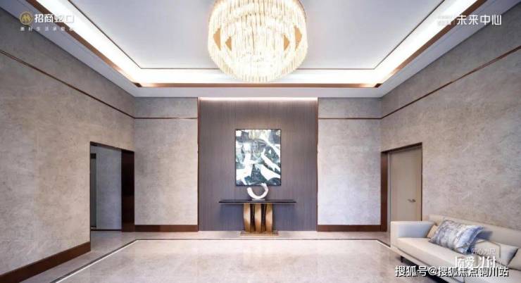 酒店式精装单元大堂,以超越同行的锻造标准,酝酿极致入户氛围,双层叠级吊顶,奢华水晶吊灯,色调统一的地面墙面,雅致在方寸之中尽显。于配套沙发上独自小憩,亦或是邀好友浅叙,生活的愉悦松弛油然而生。