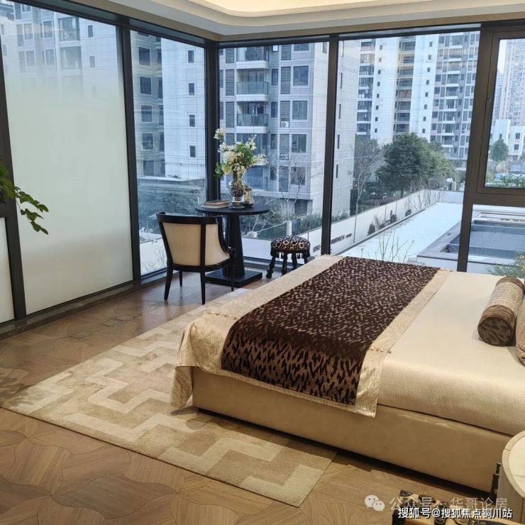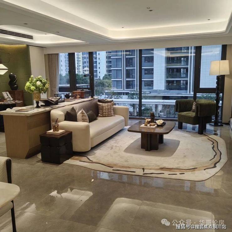 高大上的外观能够带来情绪价值,也可以影响后期流通价值。保利琅誉采用三段式的外立面,鎏金塔冠造型的屋顶,楼体是大面积的玻璃幕墙搭配金属铝板和真石漆,南向窗墙比达到约70%,看起来大气的同时也极大的增强室内的采光效果。