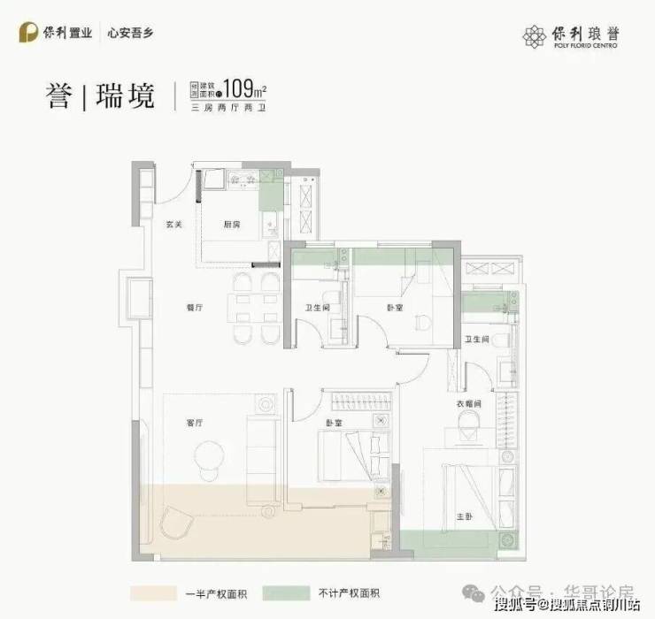 建筑面积约109㎡的三房,南向约10.7m面宽,约4.2m宽厅,约20㎡主卧套房,约51㎡LDKG公区空间。