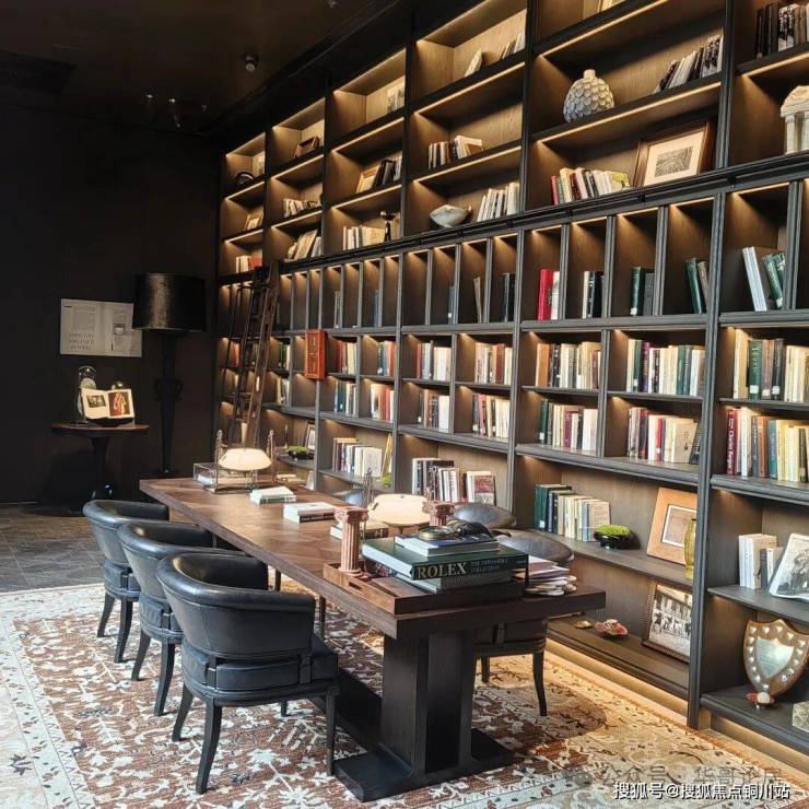 项目参照瑰丽酒店的风格,打造了约1200㎡的下沉式会所和1600㎡的架空层泛会所,包含私宴厅、影音室、健身房、12m挑空的书吧以及亲子互动、儿童成长、研学天地、健康休闲四大主题活动区。