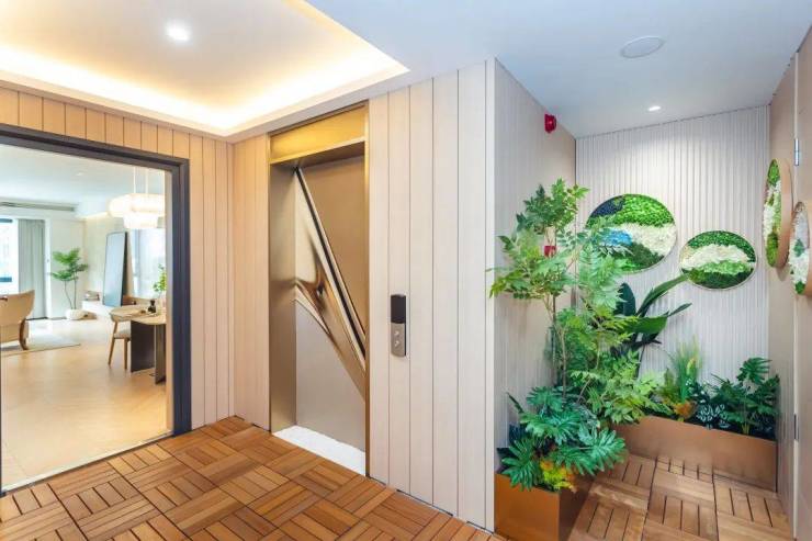 电梯前室,家政空间、入户庭院等都能被拿来利用。这部分空间除了承担家庭收纳的作用,还能成为家中最有呼吸感的“第三空间”。