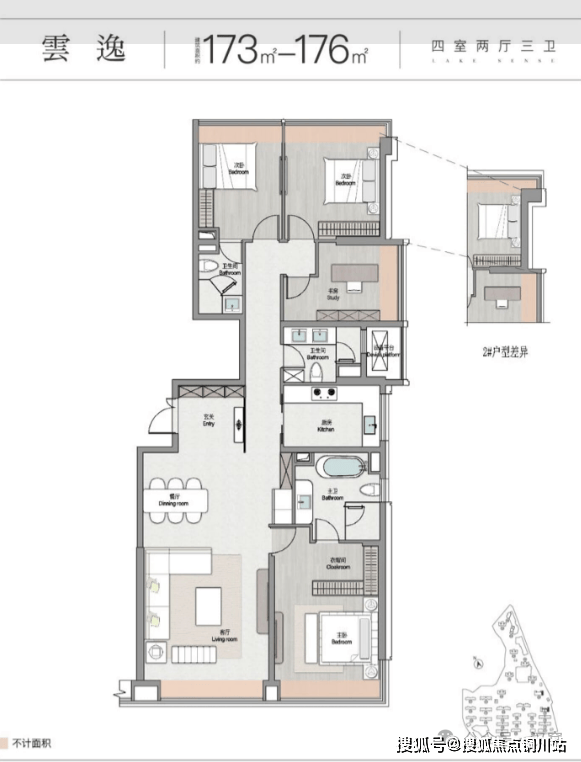 瞰湖大平层 173-176㎡ 4 室 2 厅 3 卫