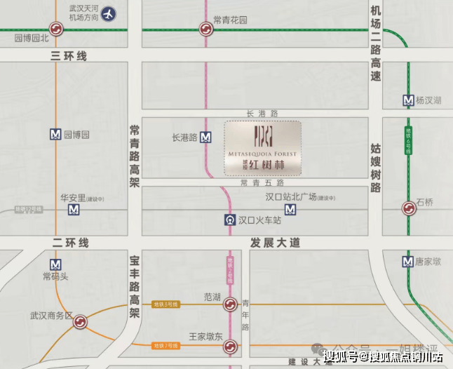 项目往西步行约500多米是2号线长港路站,通过2号线可与多条地铁换乘,还能串联起武汉超多重磅资源。
