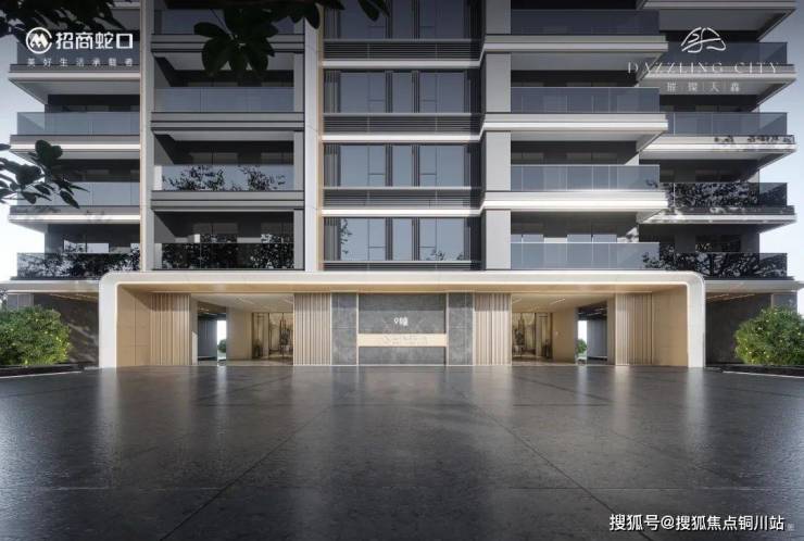 奢雅的酒店式社区大门搭配洄游式落客区,尊贵的归家仪式感拉满;就连楼栋入户门头都采用了铝板和石材,结合格栅点缀细节,质感满满。