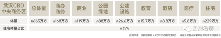 与汉口二七滨江商务区同为武汉强规划板块,武汉CBD是城市核心发展引擎之一。目前二七滨江重点项目总体量约537万方,住宅体量约279万方,占比达52%。武汉CBD重点项目总体量约663万方,住宅体量占比仅约35%,更少的住宅占比小意味着更稀贵的品质居住区。