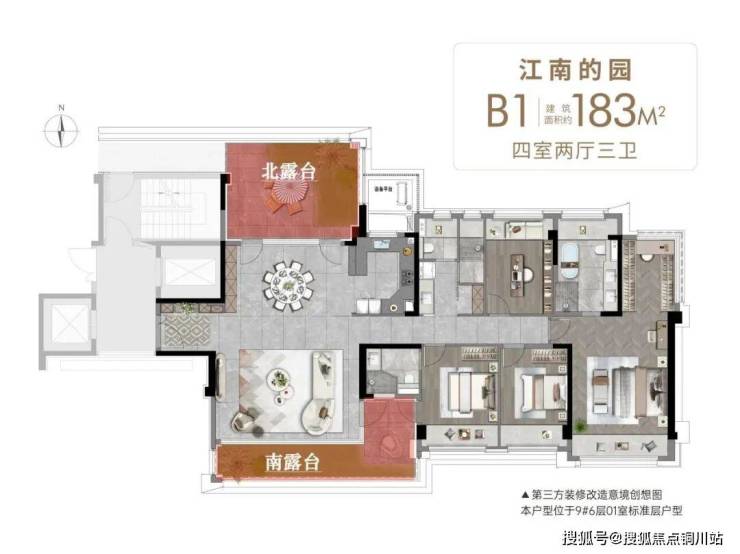 南、北双露台环抱客厅,受干扰较小,且隐私性更好,三代同堂,互不干扰,非常乐哉。
