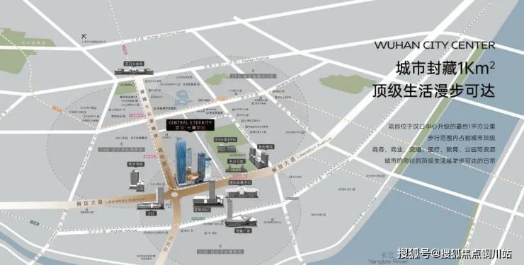 武汉三镇中心占地面积约4.22万方,总建面约34万方,容积率8.05,共1525户,机动车停车位2495个,车位比约1:1.6,包含3栋住宅、约7万方商业街,以及约10.5万方商务办公及高端公寓。