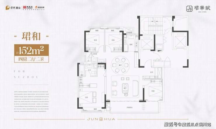珺华赋产品建面约152-222㎡全系大平层,同质而居,全改善的面积段意味着更为纯粹的社交圈层。