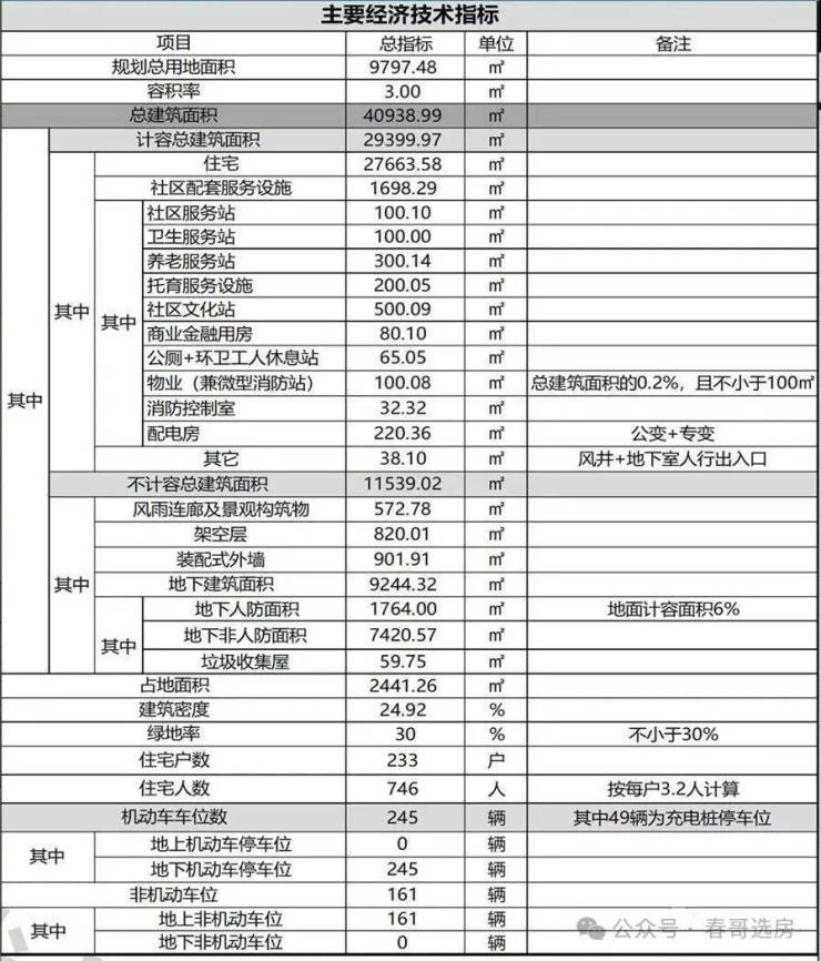 据经济技术指标显示,联发悦榕华规划用地面积为9797.48平米,容积率3.0,总建筑面积为40938.99平,其中计容总建面为29399.97平,住宅建面27663.58平,绿地率30%,规划233户住宅,机动车车位245个,均为地下停车位,另有161个非机动车位,均为地上。