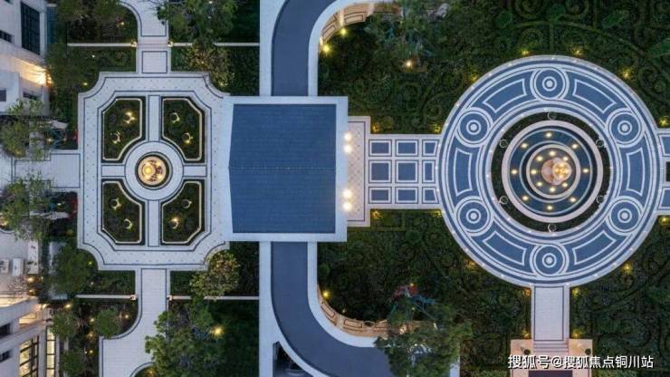 项目溯源凡尔赛宫、卢浮宫、圣彼得广场、巴黎圣殿等经典法式建筑,采用石材立面、三段式古典构形及孟莎顶、山花等法式细节元素,还原古典法式的美学意蕴;承袭法式宫廷园林,复刻凡尔赛宫花园、赫内拉利菲宫的十字双轴,于空间秩序中营造归家仪式感。