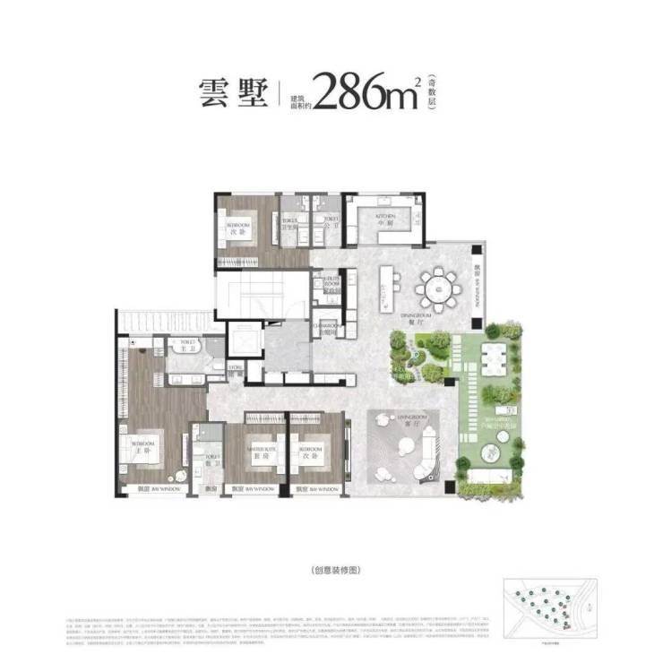 如果说193㎡是山居生活的优美散文,那么286㎡的楼王户型,就是一首磅礴的史诗。