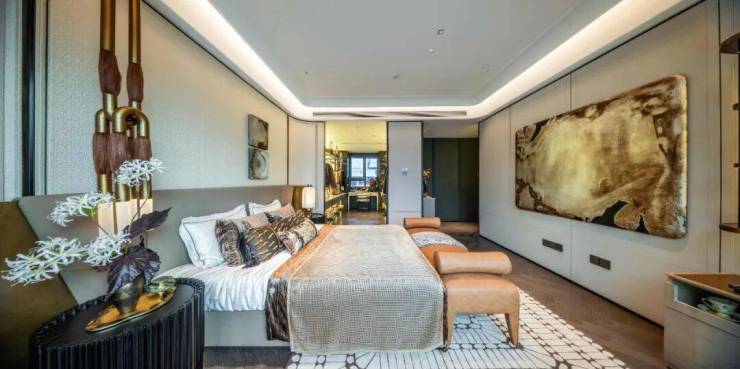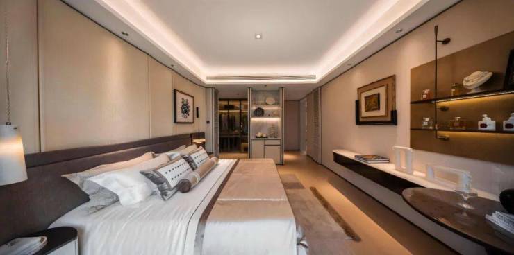 南向的双套房设计,让每位家人都能保有私密与尊严。主卧套房里,安第斯雪景岩板的台面、预留的美妆冰箱,都在诉说着对居住者的细致关怀。