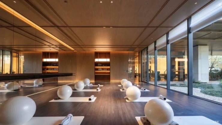 但更让人惊叹的是这个悦己会所面积达到约1200㎡,设置3大功能区,含瑜伽室、健身房、室内恒温泳池及室外戏水池——这里与其说是会所,不如说是一座以山为幕的生活剧场。