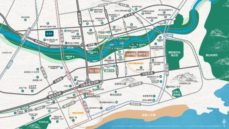 张村河生态长廊、金岭山生态公园、崂山西麓等园林景观,良好的生态休闲环境为居住品质提供了无限升级可能。
