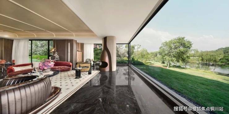 这当然意味着更高的成本投入,但也进一步打开了户内的景观视野,让房子能更充分的揽景入室,与阔绰的水景园林和外部九里河湿地公园的景观,有更充分的互动。