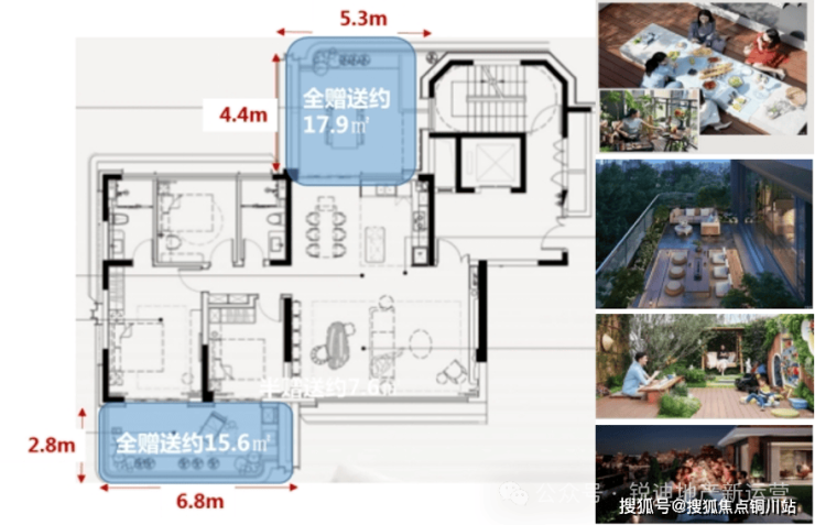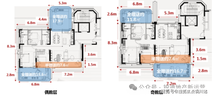 【125㎡户型】 赠送面积约36-41㎡,实际面积超160㎡,最高使用率可达133%