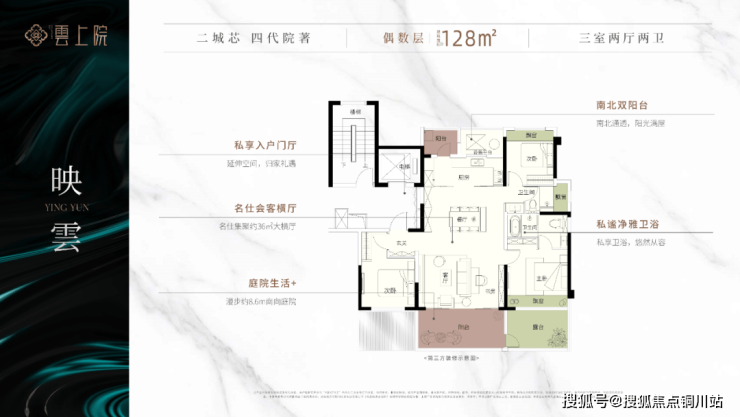 建面约128㎡“映云”户型,以约6米挑高空中庭院、约5.2米LDKBG一体化横厅为核心,打破传统空间界限,实现客厅、餐厨、花园与阳台的流畅衔接,营造出开放而互动的生活场景。创新设置的“八百库”收纳系统,轻松容纳家庭大件物品,提升空间实用性。