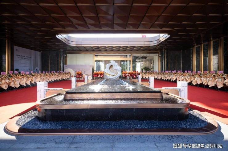 中央水景寓意处世周道,蒸蒸日上,水在源著雕塑处汇聚